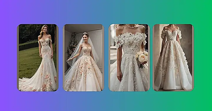 Dive into Floral Variety: 16 3D Wedding Dress Inspirations