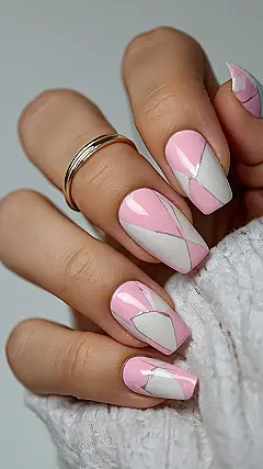 These nails are screaming “spring break”! The pink and white combo is super cute and reminds me of strawberry lemonade on a sunny beach. Those silver lines are like the cool ocean breeze, keeping it classy while you’re busy building sandcastles or taking Insta-worthy selfies.
