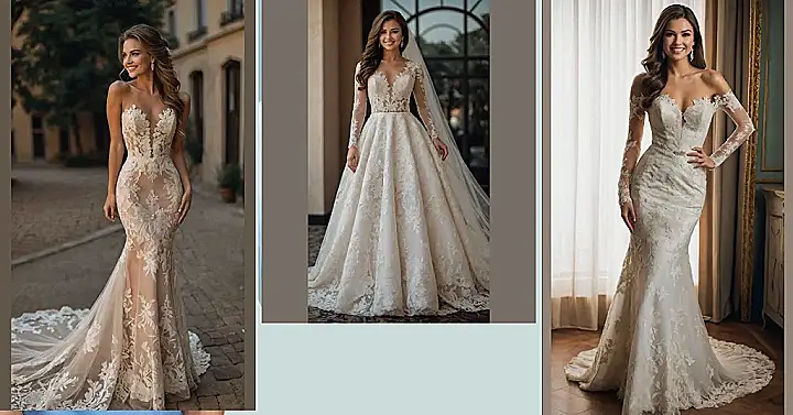 Getting married is a big deal, but picking a dress like this totally channels your inner mythical sea creature. This mermaid wedding dress look, just like the stunning one in the picture, hugs you close up top and then flares out dramatically at the bottom, kind of like a fancy fish tail. All that gorgeous lace makes it look super elegant, but you have to wonder if you’ll suddenly want to trade your heels for fins and check if the reception hall has a swimming pool.