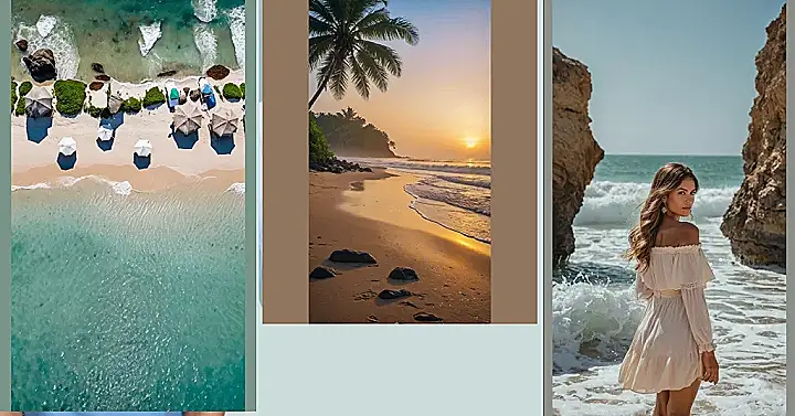 Looking at this beach photo seriously makes you want to ditch everything and just run towards that golden glow hitting the sand. It’s got the classic chill vibe with that palm tree doing its thing and the waves looking super inviting, like they’re saying “come on in, the water’s fine (and probably hiding your missing flip-flop).” This is the kind of picture you take to prove to everyone back home that you found paradise, even if you spent half the day just trying to stop the wind from blowing your hair everywhere.