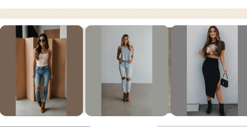 Then she pairs that awesome tank with light wash ripped jeans, which are basically the official uniform for ‘I woke up like this, but cooler.’ And who said you can’t wear heels with jeans and a tank? Our model shows us it’s a total power move, making the whole outfit pop without looking overdone. Plus, that fancy little clutch she’s holding probably holds all the essentials, like your phone, lip gloss, and maybe an emergency candy bar. This outfit proves that your trusty tank top isn’t just for P.E. – it’s for making a statement, one stylish ripped knee at a time!
