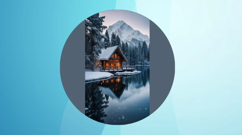 And check out that scenery! With giant, snow-dusted trees and a majestic mountain photobombing in the background, this place is straight out of a movie. The calm lake acts like a giant mirror, reflecting all those pretty cabin lights and making the whole scene double the awesome. It’s like the universe is saying, “Here, have some perfect winter magic.” Just imagine trying to build a snowman out there – you’d probably end up making a snow-angel instead, because, let’s be real, it looks too pretty to disturb!