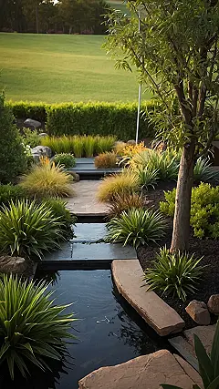 On the flip side, consider incorporating hardscaping elements like decorative rocks, gravel pathways, and artistic boulders to reduce water usage and add structure to your outdoor space. Pair these features with well-placed succulents that love the sun’s rays, creating eye-catching focal points that sparkle against the earthy tones of your landscape.