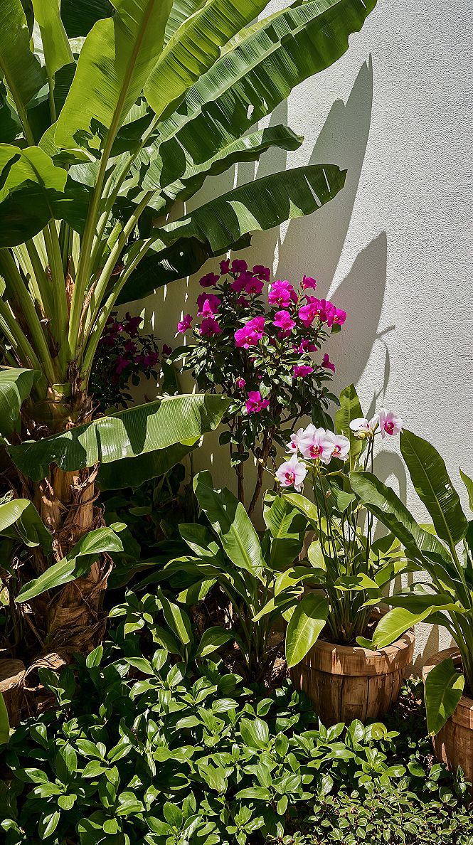 Escape to a personal paradise with this captivating tropical garden design, expertly crafted for small spaces. Imagine vibrant bougainvillea and exotic orchids creating a lush backyard inspo, turning any corner into a dream garden.