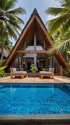 Check out this super cool resort design! This isn’t your grandma’s boring beach house. It’s like a giant triangle decided to go on vacation and build itself a sweet pad. Seriously, who needs boring square houses when you can chill under a massive thatched roof listening to the waves crash? The designers were clearly thinking outside the box, or maybe just really, really into geometry.
