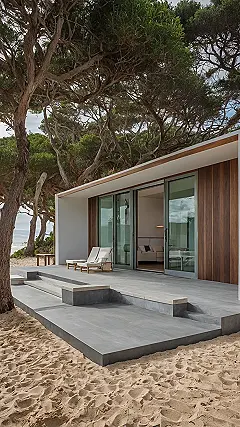 Looking at the design details, it’s like they took all the best parts of the beach – the bright sky, the clean sand, maybe a cool piece of driftwood – and built a house around them. The simple white walls keep things breezy, and all that warm wood makes it feel cozy, not stuffy. And balconies everywhere? Perfect for dramatic exits or just soaking up the sun without getting actual sand stuck in places you don’t want it. It’s basically a giant, stylish box designed for maximum relaxation and minimum worries about where you put your wet towel.