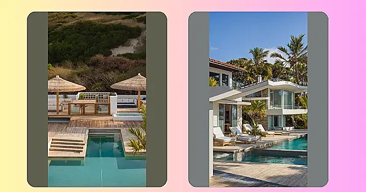 If I lived here, my biggest daily challenge would be deciding which comfy spot to occupy first – the sun lounger by the pool or the giant outdoor couch that looks like it could swallow you whole in comfy goodness. This setup screams “no homework allowed!” It’s the ultimate beach house goal, a place where your biggest worry is probably running out of sunscreen or debating if you should get back in the pool for the tenth time today.