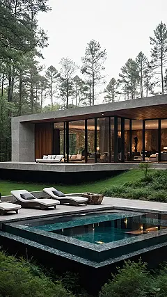 Then there’s that amazing pool, looking like a secret jewel hidden amongst all the green. It’s practically begging you to dive in after a long day of… well, whatever super important things people do in forest mansions, probably not homework! With those huge glass walls, you could host the coolest sleepover ever, staring out at the trees while playing video games, or just pretending you’re in a nature documentary, but with much comfier seating. Just try not to get startled if a curious deer taps on the window asking for the Wi-Fi password – even wildlife appreciates a good connection in a place this swanky!