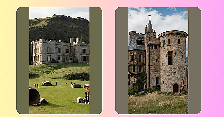 Nestled among ancient forests and rolling hills, a grand estate emerges, echoing the majestic charm of medieval castles. Towering spires adorned with intricate stone carvings pierce the cotton candy clouds, while a moat teems with vibrant koi fish adds a touch of whimsy to the stately facade. Inside, the interiors blend opulence with timeless elegance, featuring ornate chandeliers, tapestries depicting tales of valor, and grand fireplaces that crackle with warmth and tales of yore. Each room exudes regal allure, inviting occupants to feel like royalty within the comfort of their own abode.