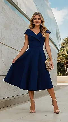 That navy dress is totally rocking! It’s like the perfect blend of “I’m ready to conquer the world” and “I also want to look fabulous doing it.” Imagine yourself swirling around in this beauty – no need for a tiara, you’re already a princess! It’s a simple style, super chic, and the cut is flattering on practically everyone. Who needs complicated when you’ve got this level of effortless elegance?