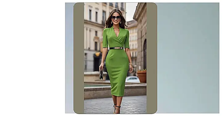 This fantastic green dress is practically screaming ‘I’m ready for that wedding!’ Our stylish friend here looks like she’s about to walk into the ceremony, ready to celebrate and maybe sneak an extra cupcake. The color is so vibrant, it’s almost like she’s challenging the bouquet for attention – but in a totally friendly, stylish way, of course! You can tell she’s probably got her dance moves perfectly choreographed, just in case the DJ plays that one song everyone has to get up for.