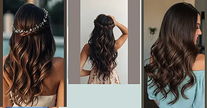 This hairstyle is like the perfect mix of “I’m ready for anything” and “I’m still chillin’.” Imagine you’re getting ready for a fancy dinner, but you also want to look like you just rolled out of bed (in a good way, of course!). This half-up, half-down style is perfect for that! It’s got that effortless, wavy look that’s easy to manage, but it also has a little something extra with the twist at the top, so you don’t look like you just woke up.