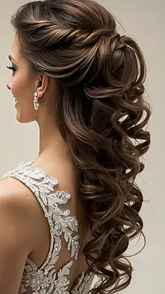 Imagine you’re getting ready for your big day, and you’re staring at all these fancy updos in magazines. You want to look like a princess, but the thought of a complicated bun or braids makes your head spin! Don’t worry, it’s totally normal to want a hairstyle that’s easy and beautiful, and that doesn’t require hours of wrestling with your hairspray. This hairstyle, with loose, flowing curls and a sparkly headband, is like a breath of fresh air. It’s effortlessly elegant, and you can still feel like a bride without having to deal with a ton of hairpins!