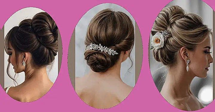 And check out that sparkle! The dazzling hair clip nestled in this beautiful updo is basically your hair’s personal bodyguard, making sure everyone knows who the star of the show is (besides you, of course!). It’s got just enough shimmer to catch the light without going full-on disco ball. Plus, the soft, romantic twists look so effortlessly chic, it’s like your hair decided to be fancy but also wanted to chill out and enjoy the party – no super-tight hair helmet vibes here, just pure elegance and comfort.