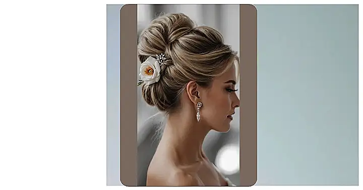 Just peep that amazing smile in the picture – that’s the face of someone who knows their hair is totally slaying the game! This bridal look, complete with those dazzling earrings and a radiant glow, is proof that a beautiful hairstyle can make you feel like you’re ready to conquer the world (or at least your wedding day). A French twist isn’t just about getting your hair up; it’s about feeling effortlessly chic and confident, giving off those happy, relaxed vibes while still looking super put-together. It’s the kind of hair that tells everyone, “I’m fabulous, I’m happy, and yes, I’m having the best day ever!”