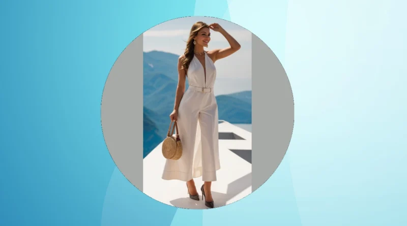 This fashionista is absolutely rocking a super chic white jumpsuit and some killer high heels, all while holding a perfectly stylish straw bag. She’s standing in a breathtaking spot that looks like it’s straight out of a vacation magazine, shading her eyes with a smile. But if someone tried to convince us this was her ‘picnic outfit,’ we’d probably wonder if the picnic was happening on a cloud or perhaps a very fancy yacht! Trying to find a comfy spot on a checkered blanket in those heels, or avoiding grass stains on that pristine white fabric, sounds like a mission impossible.