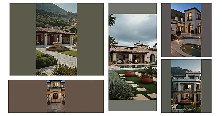 Step into a world where history and elegance intertwine effortlessly, where terracotta hues bask under the Mediterranean sun, and flowering vines climb antique stone walls. Wander through the inviting courtyard, where every corner tells a story of Spanish heritage with its wrought-iron details and vibrant mosaic tiles. The air carries a hint of citrus and lavender, inviting you to embrace the rustic charm and timeless beauty of a Spanish villa.