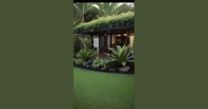 Forget delicate flowers and fussy bushes; these rocks in the image are the real stars of the show! They look like they just rolled in, found a comfy spot amongst the plants, and decided to stay forever. We’re pretty sure convincing these massive stones to move was a workout worthy of a superhero, but now they just sit there, looking all majestic and keeping the smaller plants company. That path made of big, flat rocks? It’s like a custom-built obstacle course for anyone trying to sneak in after curfew, or maybe just a really cool way to walk up to your awesome house.
