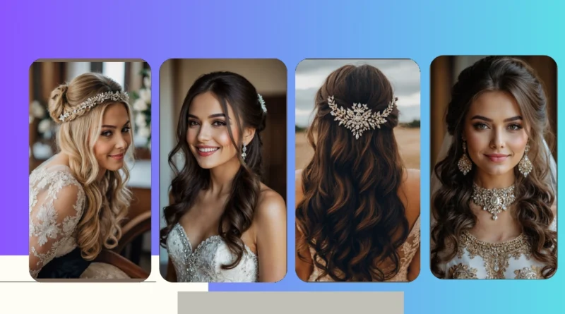 Woah, check out this hair! It’s giving off major “future Mrs.” vibes, and honestly, we’re obsessed. This isn’t just a hairstyle; it’s a masterpiece that says, “I’m ready for my close-up!” We love how it’s half-up, half-down with those gorgeous waves, giving you the best of both worlds – elegant for all the fancy photos, but still super fun and flowy. And that sparkly headband? It’s basically a crown, making sure everyone knows you’re the star of the show, dazzling brighter than any disco ball.