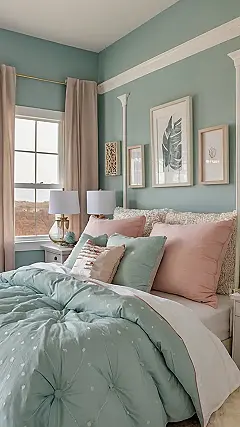 Imagine walking into a ladies’ room so stylish, it looks like this bedroom! It’s got everything: comfy vibes, pretty colors, and enough pillows to build a fortress. I bet you could spend all day in here, getting ready, gossiping with your friends, or just chilling out with a good book. Who needs a party when you have a ladies’ room this awesome?