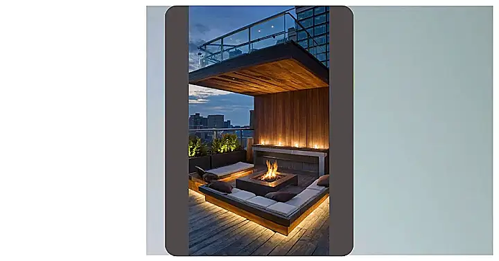 Imagine you’re hanging out with your friends on a rooftop patio, but instead of just a plain concrete slab, you’ve got a fancy wooden deck that curves around like a giant, comfy hammock. You can lounge on comfy chairs, soak up the sun, and gaze out at the city like you’re in a movie. It’s like your own personal slice of paradise, way up in the air!