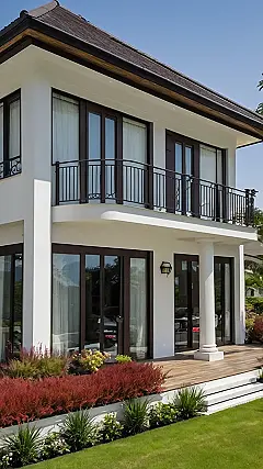 Stepping out onto that cool balcony every morning would make me feel like some kind of movie star, or at least like I don’t have to worry about where my next snack is coming from. You could probably host the most epic study group ever out here, assuming anyone could focus with all this fancy-ness surrounding them. The whole place just looks so clean and bright, like something you’d build in The Sims if you had unlimited money cheat codes turned on. Yep, definitely adding this specific house to my vision board.