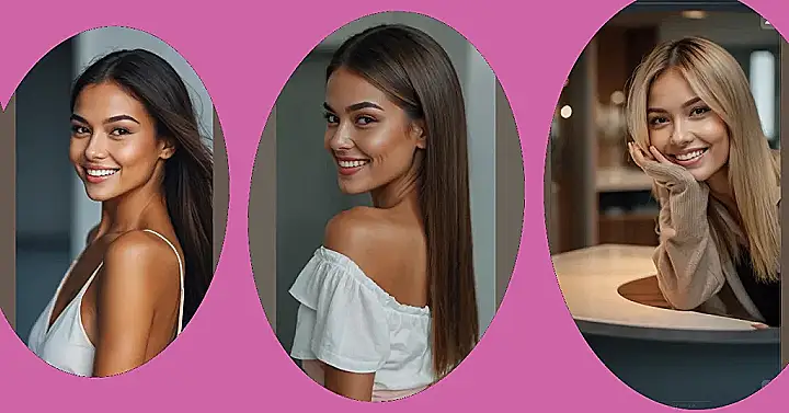This girl’s got the straightest hair you ever did see! It’s so smooth and sleek, it’s like she’s got a built-in hairbrush in her head. And that smile? It’s as bright as a sunny day, just like her straight, shining locks. You can almost hear the hair stylists cheering, “Good job, hair! You did it!”