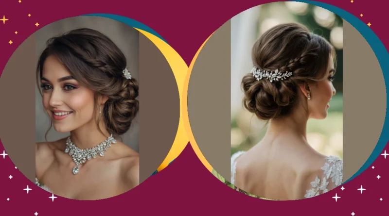 This updo is so perfectly put together, it probably has its own personal assistant. It’s got all the twists, turns, and sparkling bits a bridesmaid could ever dream of, making you look effortlessly glamorous – even if it took three hours and a whole can of hairspray to achieve. You know, the kind of hair that’s ready for all the wedding photos, the awkward dance moves, and even catching the bouquet (if you’re brave enough to go for it!).
