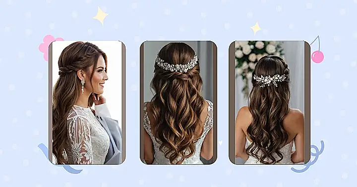 Let’s chat about the versatile half up half down hairstyle. Picture this: elegant, simple, and the perfect backdrop to show off those rolling waves. This look is not only gorgeous, but you can also add cultural details if you’re a stunning Pakistani bride, merging both modernity and tradition flawlessly.
