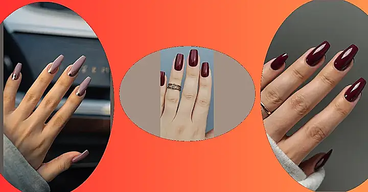 This picture shows some seriously stylish nails, painted in a deep, rich burgundy shade. It’s like the color of a fancy wine you’d sip at a fancy dinner party, but way less messy. You could totally pull off this look, even if you’re just hanging out with your friends at the mall or having a pizza night at home.