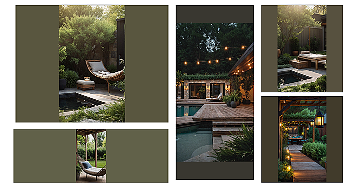 The allure of poolside perfection lies not just in the visual splendor, but in the careful consideration of every detail. A mosaic-tiled bar gleams like a hidden gem, inviting guests to indulge in refreshing libations. Lanterns and string lights illuminate the setting as day fades into night, casting a soft, enchanting glow over the water’s surface. Plush rugs underfoot soften the transition from the cool poolside tiles, creating a space that seamlessly marries comfort with style. Here, outdoor decor luxe reigns supreme, transforming a simple poolside retreat into a lavish escape that embodies relaxation and sophistication in equal measure.