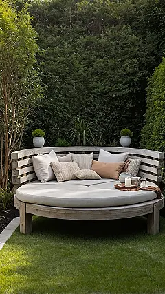 Step right up to what might just be the comfiest spot on planet Earth, located right in your very own simple backyard! This giant, cloud-like daybed, piled high with enough pillows to start a fort, practically screams, “Forget your chores, embrace the nap!” It’s the perfect hideout for escaping that never-ending homework, getting lost in a good book, or even having a super-secret strategy meeting with your besties about who gets the last slice of pizza. Good luck ever wanting to go back inside when this is waiting.