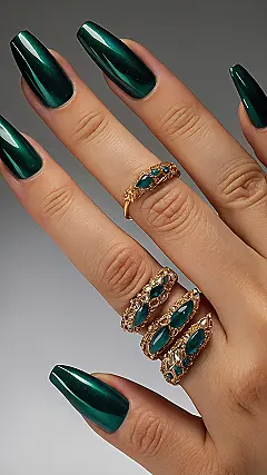 Plus, when your nails look this sharp, adding some rings is like giving them their own VIP entourage. These shiny rings totally complete the look, making your hand feel ready for anything, from slow dances to dramatically tossing glitter. Just be careful you don’t get distracted by all the sparkle and forget to actually dance! It’s all about feeling your best and having fun, and sometimes, the right prom nails and bling are the secret ingredients to feeling like the main character all night long.