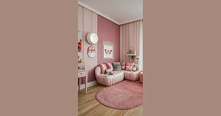Imagine stumbling into this “ladies room” after a long day; it’s like walking into a giant cloud made of cotton candy! The plush pink rug practically begs you to kick off your shoes and sink in, while that marshmallow-y couch looks like the perfect spot to gossip with your besties. Who even needs a spa when you can just bask in this sugary-sweet sanctuary?