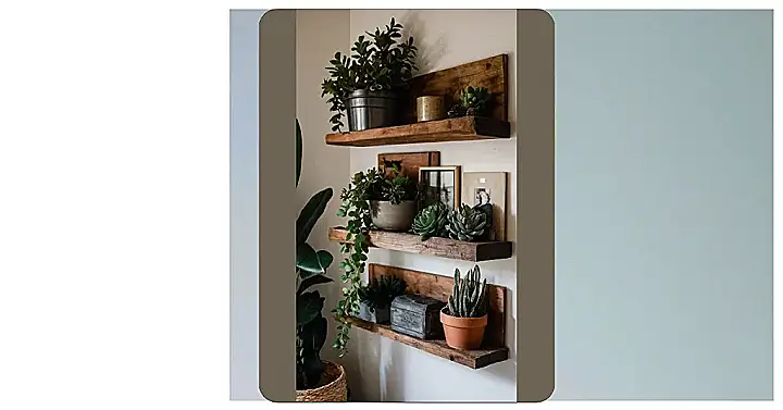 Forget fancy, expensive home decor! This image shows how easy it is to create a stylish and luxurious-feeling space without breaking the bank. Those gorgeous wooden shelves? Probably a DIY project from reclaimed wood (super trendy!), and the plants? They add a touch of class that costs next to nothing if you propagate your own cuttings or buy plants from a local market! You’re basically showing off your green thumb *and* your design skills – double win!