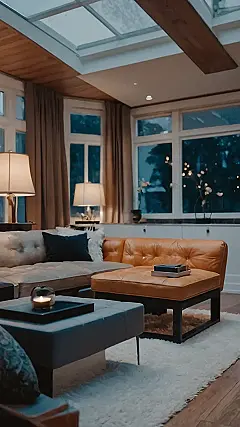 This living room is like a dream come true for anyone who loves a little bit of luxury. The soft, plush furniture is perfect for relaxing, and the big windows let in tons of natural light. But the real showstopper is that amazing skylight! It’s like having your own little piece of the sky right inside your home, making the whole room feel bright and airy. Plus, it’s like a giant disco ball when the sun hits it, making every day feel like a party!