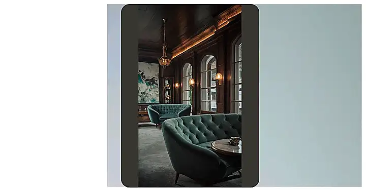 This room is like stepping back in time, but in a good way! The dark wood walls and intricate moldings make it feel like a cozy library, but the plush green velvet couches are totally inviting for a movie night. Those fancy lamps are definitely a statement, and the chandelier makes it look like a fancy party is about to start.