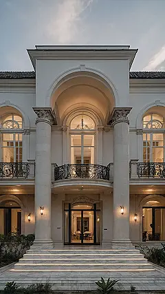 Walking into a ‘neoclassical villa’ like this is basically stepping back in time, except with better lighting and way less toga drama. You’ve got these humongous columns that look like they were borrowed from an ancient temple, probably whispering secrets about emperors and stuff. And don’t even get me started on that floor! It’s so shiny, you could probably use it as a mirror to check your hair, or worse, see the exact moment you trip because you were too busy staring up at the sparkly chandelier that looks like it’s seen more parties than a disco ball. It’s all very “wow, don’t touch anything!” right from the get-go.