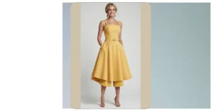 Looking at this outfit, it’s clear this isn’t just any old halter top; it’s practically sunshine you can wear! The way this yellow top twists and folds is super cool, giving it a fancy vibe without being stuffy. You can totally tell she feels confident and totally herself in it, with that bright smile. It’s the kind of top that says, “I’m ready for anything, and yes, I probably have excellent taste in snacks.”