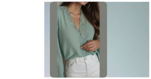 This outfit is basically a masterclass in looking effortlessly amazing. Our model is rocking a sleek, emerald green halter top that practically screams “I’m here, and I brought my A-game!” Paired with those crisp, wide-leg white pants, it’s the kind of look that makes you feel like you’re starring in your own movie montage, even if you’re just walking to get a snack. It proves you don’t need sleeves to look super sophisticated; sometimes, a chic neckline is all the drama you need to make a statement and look totally put-together.