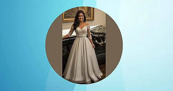 This dress is seriously stunning! Imagine yourself as a bridesmaid in this gorgeous, champagne-colored gown. It’s like something straight out of a fairytale – all swishy satin and delicate lace sleeves. You’d feel like a total princess, even if the only royal event you’re attending is your best friend’s wedding. Plus, you’ll be the most stylish bridesmaid, hands down! Forget about fighting over who gets to wear which dress; everyone will want this one.
