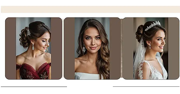 Let’s tackle that all-important hair length. Whether you’re blessed with long, flowing hair or you’re rocking a stylish medium or short cut, there’s an array of options at your disposal! Straight hair can exude sophistication while curls bring a sense of whimsy and romance. And remember, a middle part can give that polished look while a side part can channel all the elegant drama as you approach the aisle!