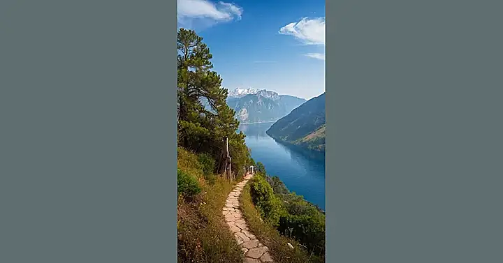 Imagine walking down that wooden path – it’s like stepping into a postcard. This photo gives off serious “escape the city” vibes, like you could just trade in your homework for hiking boots and disappear into this landscape. Whoever took this picture deserves a gold star for capturing a view that’s actually breathtaking, even before you factor in the fresh air!