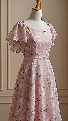 This dress is like a fairytale come to life! It’s the perfect blend of “light pink floral dress” and “wow, that’s gorgeous.” Imagine twirling in this beautiful gown—you’d feel like a princess at a garden party, or maybe even a magical woodland creature! The delicate pink and pretty flowers are so dreamy, you’ll probably start humming a Disney song while you wear it. It’s the kind of outfit that makes you want to grab a picnic basket and run off to a secret meadow to read a book… or maybe just take some seriously amazing photos.