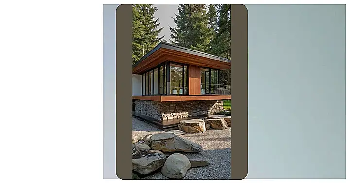 Seriously, who wouldn’t want to live here? The blend of natural materials, like the wood and stone, with the sleek black accents makes it super unique. It’s like someone decided to build a house out of a Pinterest board and succeeded beyond anyone’s wildest dreams! Plus, that patio area looks perfect for a barbeque, or even just chilling out with a good book and enjoying the peaceful surroundings. It’s basically the ultimate blend of nature’s beauty and modern comfort.