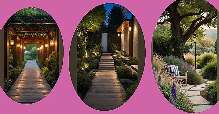 Stepping onto this path feels like you’ve found the super-secret entrance to the coolest cottage garden ever, probably guarded by overly friendly fireflies instead of grumpy security guards. The glowing lanterns guide you deeper into the greenery, making everything feel cozy and a bit mysterious, like something straight out of a fairytale where the flowers gossip about the weather. Just try not to get distracted by the sparkle and bump into a tree – they might be shy.