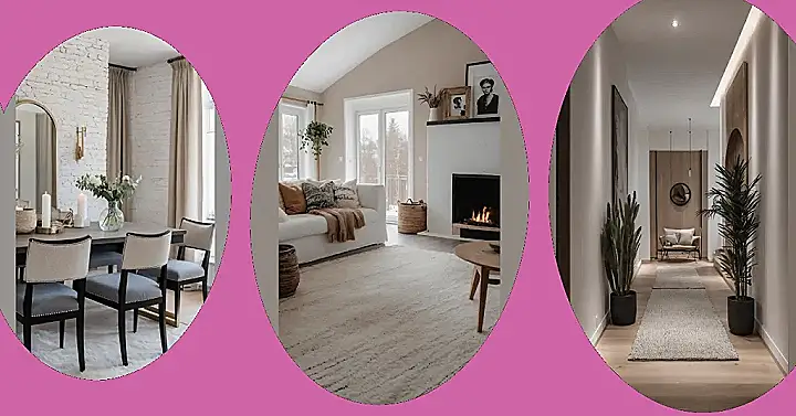 Look closely at the details in this space – they’re doing some heavy lifting in the style department! The cool, woven light fixture overhead looks like it’s got a warm secret to share, probably just how awesome it is to illuminate a Nordic wonderland. And those sleek mirrors? Not only do they make the hallway feel extra roomy, but they’re also probably wondering if you’re going to take a quick selfie before heading out. Don’t miss the console table rocking some dried feathery plants and those two little woven stools; they’re either super chic spots to perch while tying your shoes or secret hiding places for your emergency snack supply. Every piece works together to create a spot that’s both super stylish and totally practical, proving that ‘simple’ definitely doesn’t mean ‘boring.’