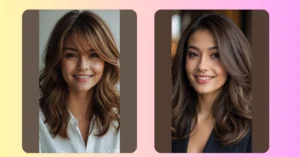 When showing your stylist a photo, point out the specific details you love — the layer length, the face-framing angle, or the volume at the crown.