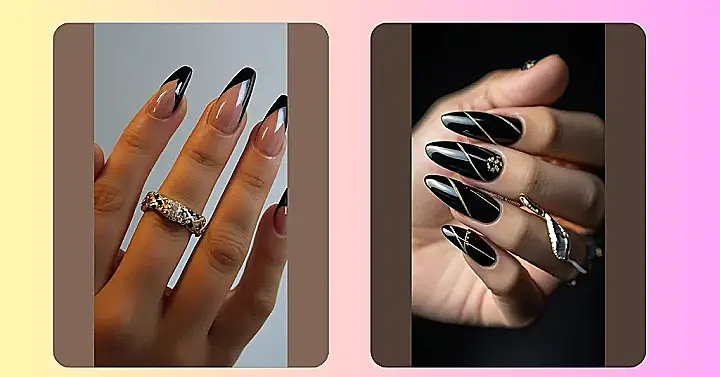 For those working with short nails—worry not! The trendy short nail designs are your golden ticket to stylish simplicity. You can use a classic black base as your blank canvas and let your imagination run wild. Whether you decide to add a splash of mesmerizing gold or some eye-catching silver, there’s a striking combination out there just waiting for you to discover!