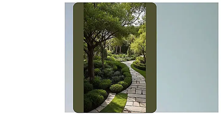 Look closer and you’ll see this isn’t just one big blob of green; it’s a whole cast of leafy characters! There are different textures and heights, from the smooth lawn to those perfectly manicured hedges and the chunky, low-growing ground cover. Those stepping stones look like they’re guiding you on a secret path, maybe to a hidden spot where you can read a book or just kick back. It totally shows that a garden doesn’t need to be bursting with bright, flashy flowers to be jaw-dropping. Sometimes, the most relaxing and coolest places are all about the beautiful greens and, of course, that sweet, sweet shade, letting you escape the sun’s paparazzi.